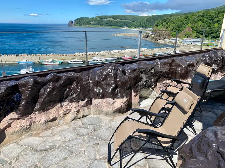 外気浴エリアに出れば、生カモメの鳴き声が聞こえる天上世界。