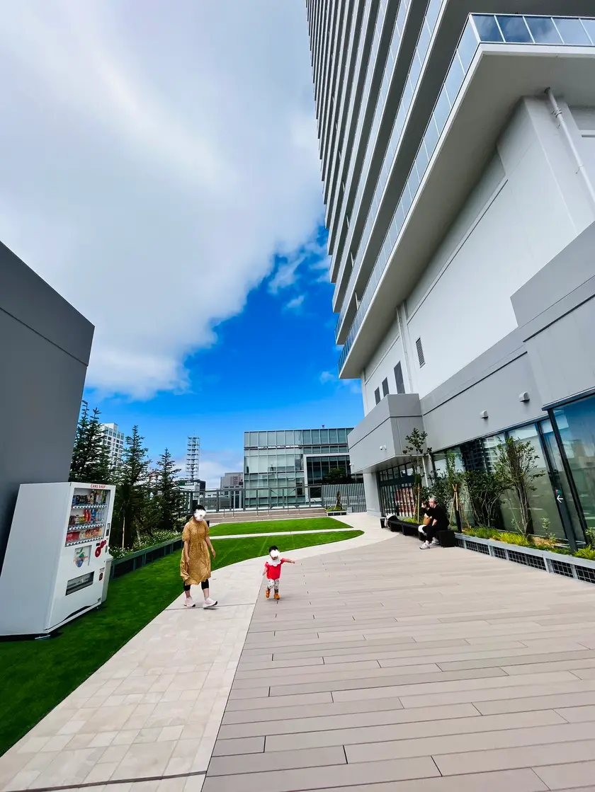 エレベーターが開くと、そこには芝生の緑と青い空のコントラストが素敵な空間が広がっていました!