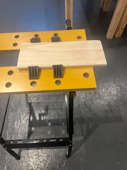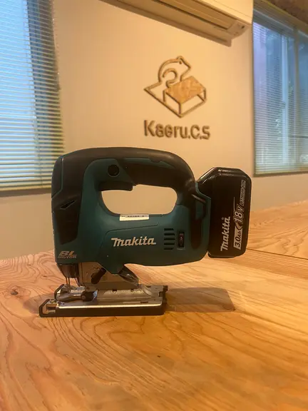 今回は「ジグソー」という機械で実際に木を切らせていただきました。木を固定する台まであり、しっかり固定され、左手で木を押さえて右手に機械を持って、いざ入刀です!