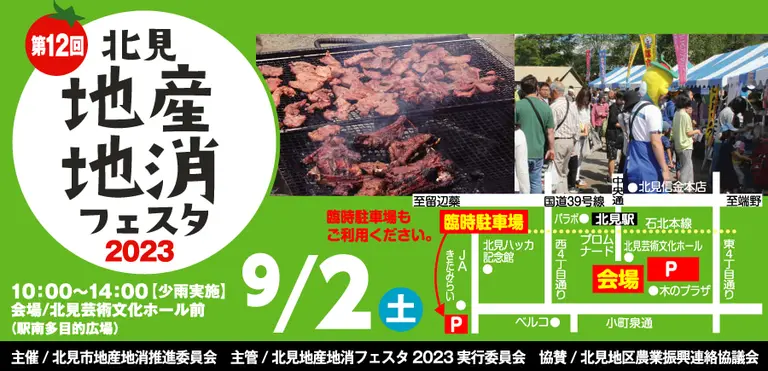 北見地産地消フェスタが9月2日㈯午前10時から午後2時まで北見芸術文化ホール前(駅南多目的広場)で開催されます。