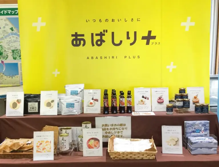 道の駅流氷街道網走内の物販スペースに網走の新たなおいしさを発信するブース「あばしりプラス」が登場、5月の開設以来多くの観光客の注目を集めています。海産物や海産珍味、網走ビールに農産加工品など、いつもの網走土産にプラスひと品手に取ってもらいたいとの想いから、網走市観光協会が今年の事業の中で網走市物産協会の協力を得て発掘した特産品を集めた特設コーナーです。