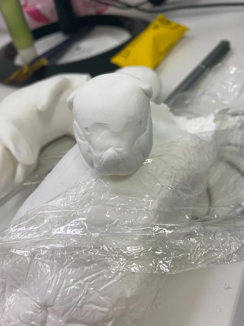 お菓子を抱え込む感じにしたかったので、体を丸くさせてコップフチで乾燥させました。