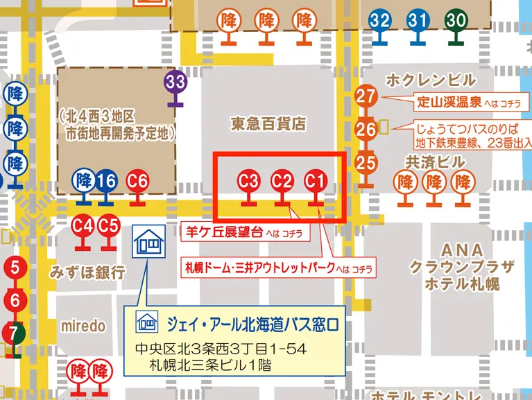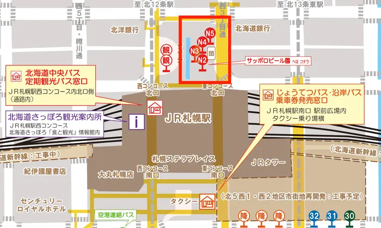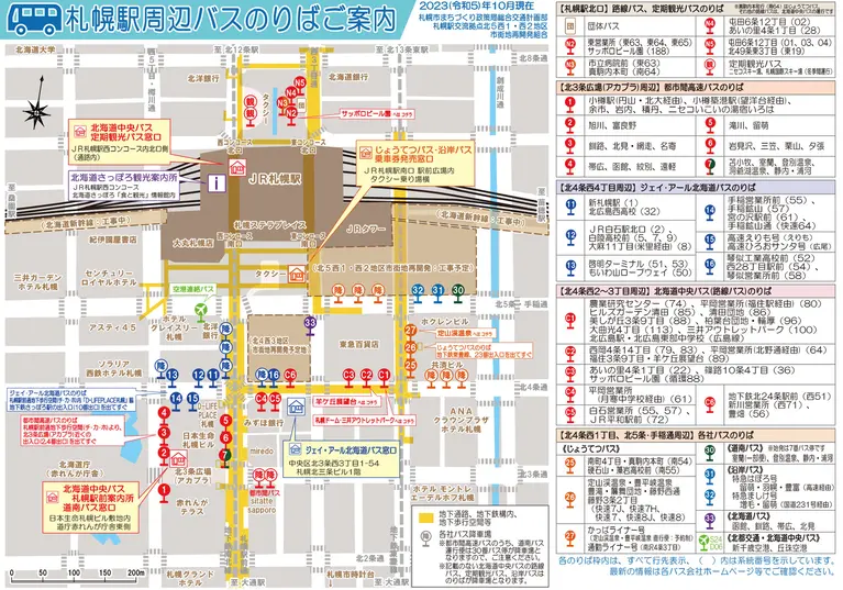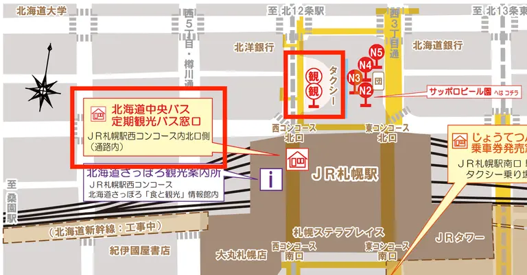 ※定期観光バス窓口は令和5年9月1日からJR札幌駅西コンコース内北口側(通路内)に移転しました。その他のバス案内所や窓口は令和5年10月1日から移転しています。