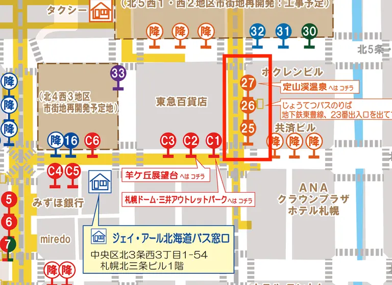 ・25~27のりば:地下鉄東豊線さっぽろ駅の23番出口(23番出口にエレベーターあり)