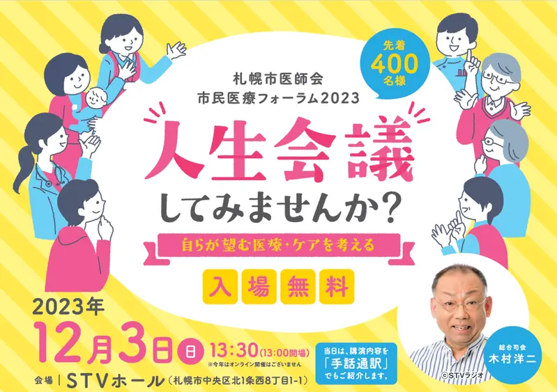 札幌市医師会 市民医療フォーラム2023 〜人生会議してみませんか?自らが望む医療・ケアを考える〜を開催します。