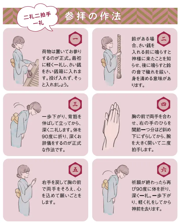 ※喪中の場合 身内の不幸から50日以内は、神社へ参拝を控えた方がいいといわれています。50日を過ぎてから参拝しましょう。