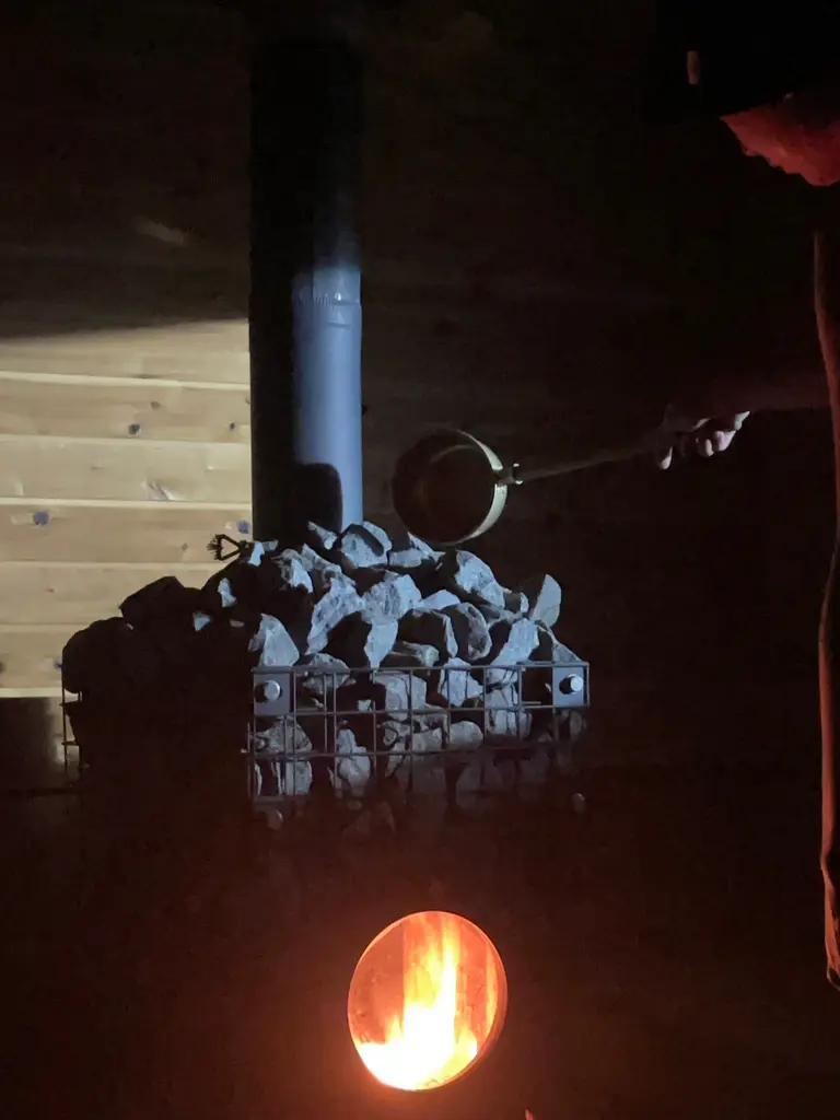 乾燥した機械サウナとは違い、ロウリュ時には木の香りが室内へ広がる空間を楽しめます。自然に返ったような落ち着いた気分にさせてくれる薪サウナのロウリュは、思わず笑みが溢れてしまいます(笑)。