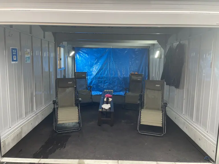 冬場限定で倉庫の中でお整いを楽しめます。風が強い日や気温が低すぎる日などの日には、ここでのお整いがおすすめ!
