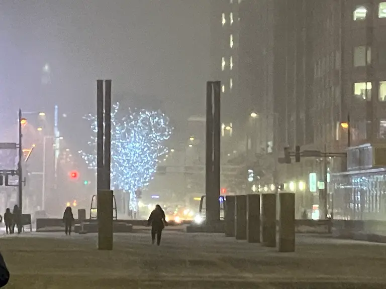 雪の中のイルミネーションのなんと綺麗なことか!