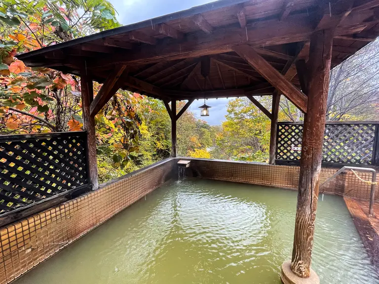 『空が見えなくては露天ではない』というカルルス温泉の思いから、あえて屋根がない露天風呂。