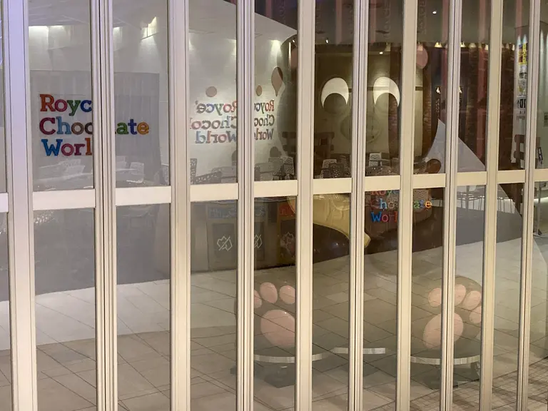 捕獲の一押しはチョコのクマさんなのですが、私が行った時は開店前だったので シャッターが掛かっていました。檻の中にいるみたいで、これはこれでレアな写真が撮れました(^^)