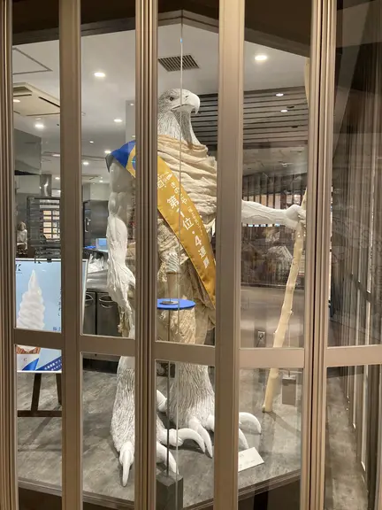 きのとや新千歳空港店に大きな獣人のアート作品を発見!