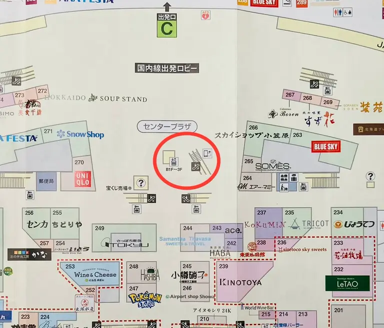 ※国際線出発カウンター前には、「北海道ぎょれん」や激安の殿堂ソラドンキ新千歳空港店などがあります♪