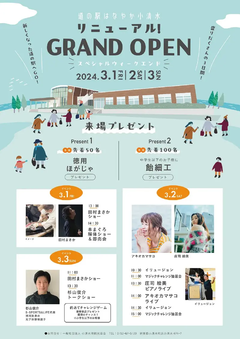 リニューアルオープンを記念し、3月1日(金)~3日(日)までの3日間は子どもから大人まで楽しめる企画が目白押しのスペシャルイベントが開催されます。リニューアルオープンイベントへご家族おそろいでお出かけになってみてはいかがですか?