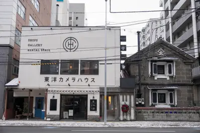 札幌駅の北口から歩いて5分ほど、北8条通りに建つ古風な石蔵と「東洋カメラハウス」と書かれた建物。