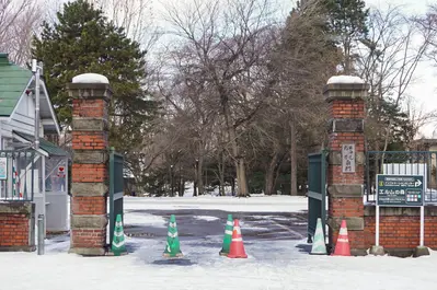 バス停「北7条西8丁目」を降りて5分ほど歩いた所に、北海道大学の南門があります。