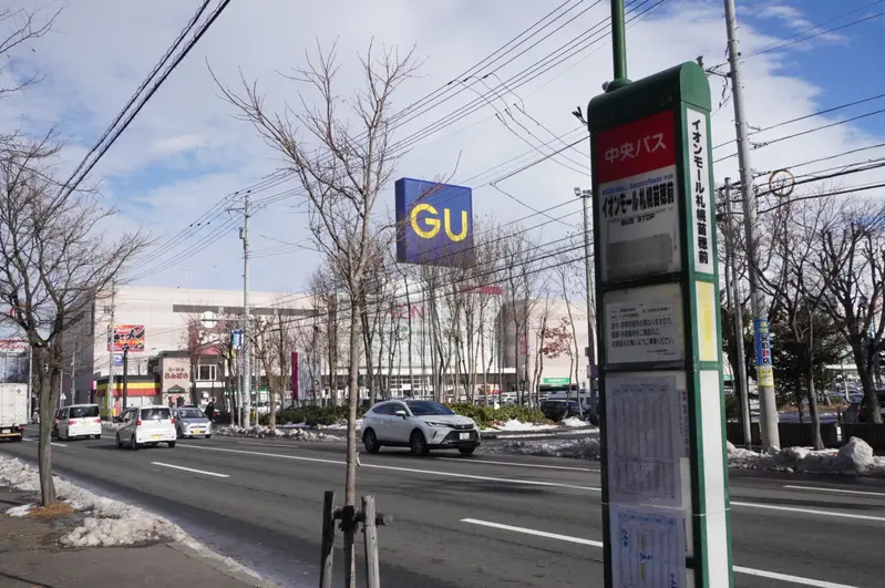 名前の通り「イオンモール札幌苗穂」のすぐそばにあるバス停です。