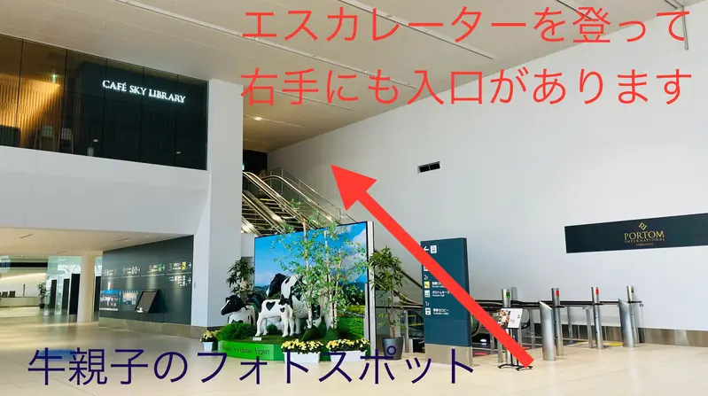 ↑リンクの動画ルート以外に、国際線3F出発口の隣り「牛親子のフォトスポット」裏のエスカレーターを4Fに登って右手の入口から入るパターンもオススメです。牛さんを皆んなに見てもらいたい笑。