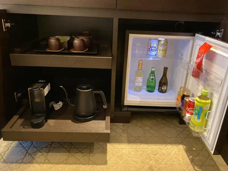 ※無料(ミネラルウォーター 日本茶・紅茶 コーヒーなど)と 有料(冷蔵庫内・ワインなど)についてはベルスタッフから説明有り
