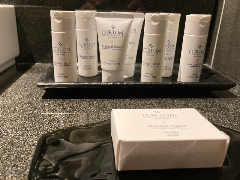 アメニティはナチュラルアイランド社製のホテルオリジナル。お肌に優しい低刺激で、トドマツ製油など北海道の厳選素材を使用。