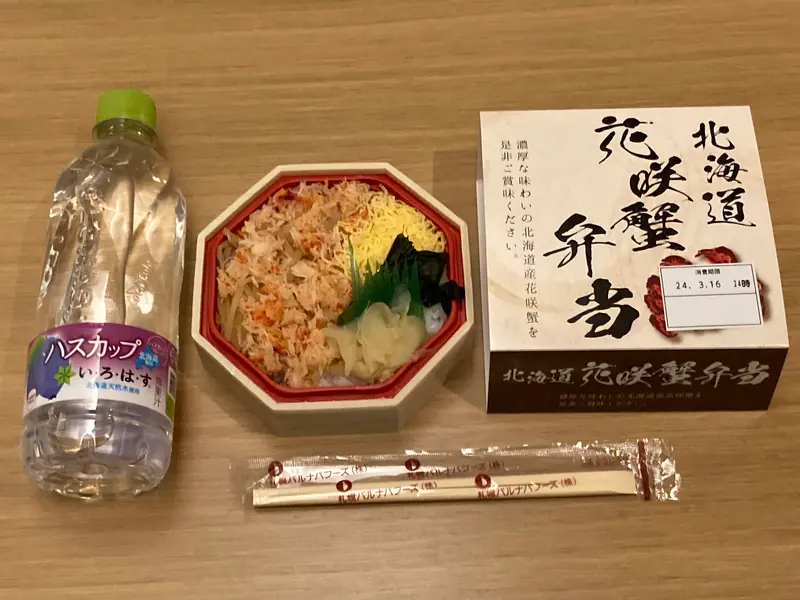 カニも食べたい!という事で お弁当処 美食千歳で空弁「花咲蟹弁当」購入。(ポルトムに持ち込みOKの確認済み)