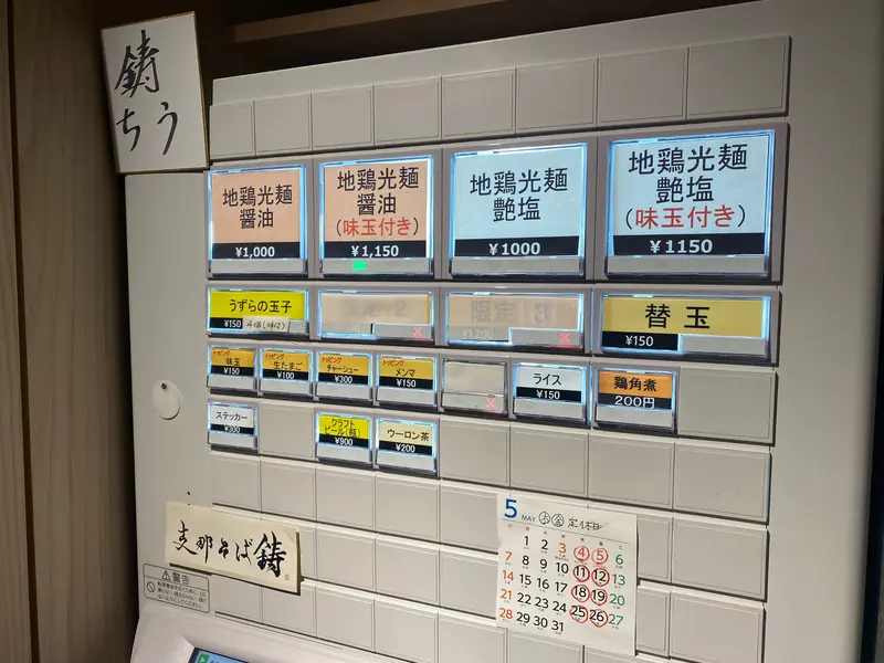基本的にメニューは「地鶏光麺醤油」、「地鶏光麺艶塩」の二種のみ。