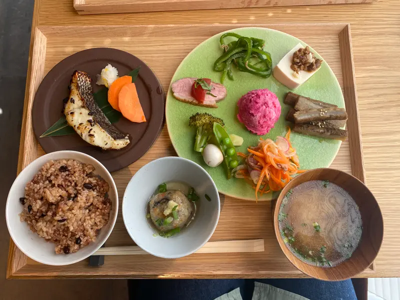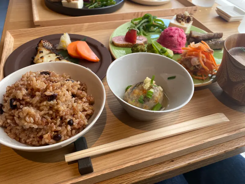 ランチは、もっちもちの寝かせ玄米と一緒に、季節ごとに旬のものを使ったお惣菜や、具だくさんの汁物、ときには自家製の漬物などが楽しめます。