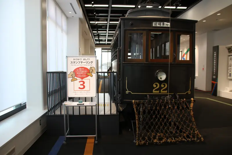 1918(大正7)年から約18年間、市内を走っていた路面電車「木製22号車」を展示しています。車内では、プロジェクションマッピングで当時の街並みが車窓に映し出され、市営交通の歴史を楽しみながら振り返れます。