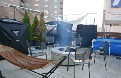 ススキノの南側、中島公園近くの閑静なエリア。UNWIND HOTEL&BAR 札幌(札幌市中央区南8西5)は2017年2月にオープンしたロッジをイメージしたコンセプトのホテルです。10階「BAR IGNIS」は札幌のホテルでは珍しいルーフトップテラスを備え、中心にはたき火スペース。札幌都心でグランピング気分を味わえるスポットでサウナを満喫できる、そんなイベントに行ってみました。