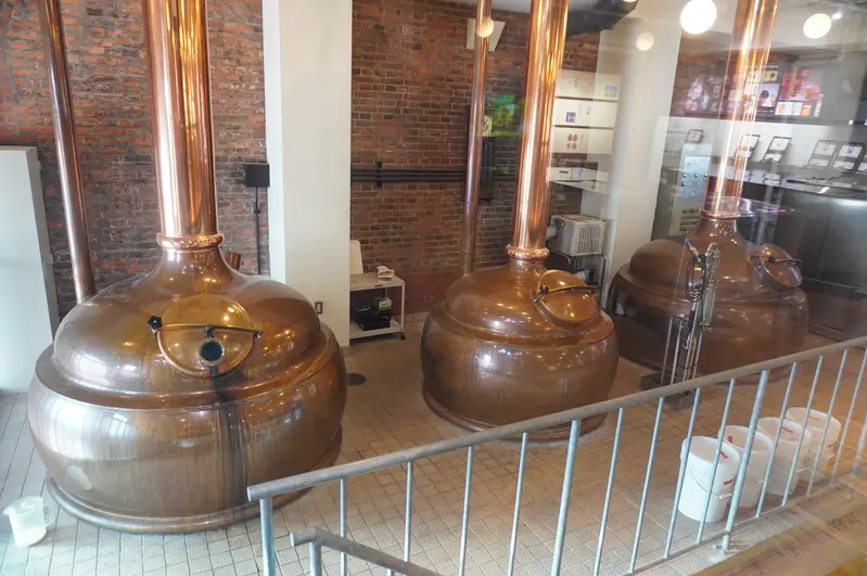 さらに、アクリル板ごしに麦芽の仕込みや煮沸に使う釜も見ることができます。