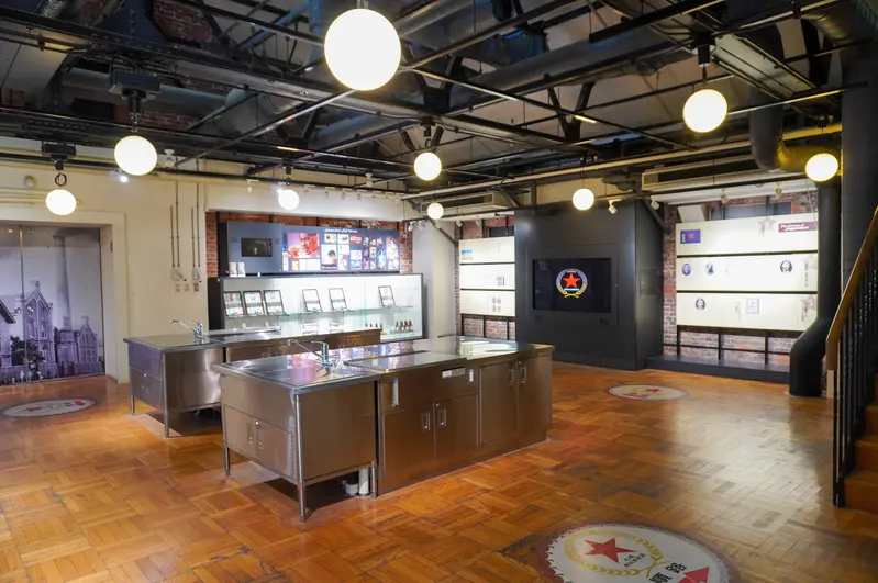 館内にはランドマークでもある大きな煙突や工場をいかしたレンガづくりの建物があり、当時の名残を随所に残しています。