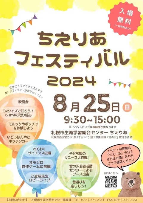 8月25日(日) ちえりあフェスティバル2024@札幌市生涯学習総合センター ちえりあ