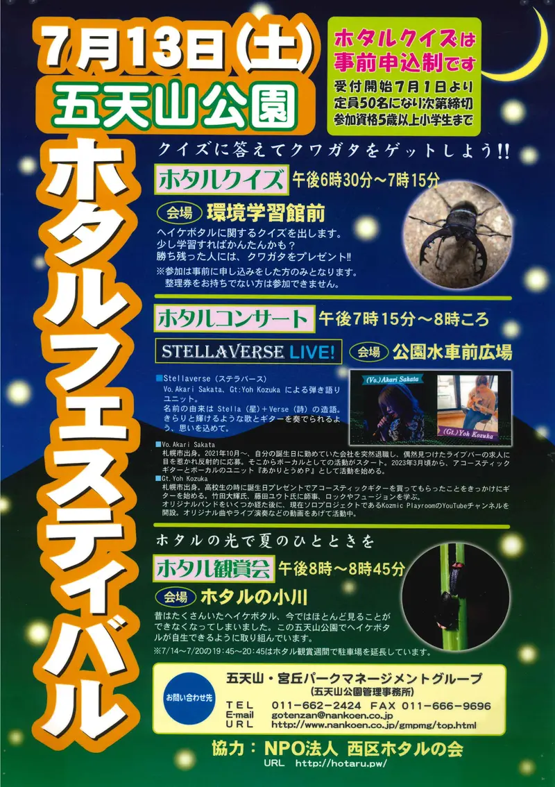 011-662-2424 五天山公園夏祭り実行委員会(五天山公園管理事務所内)