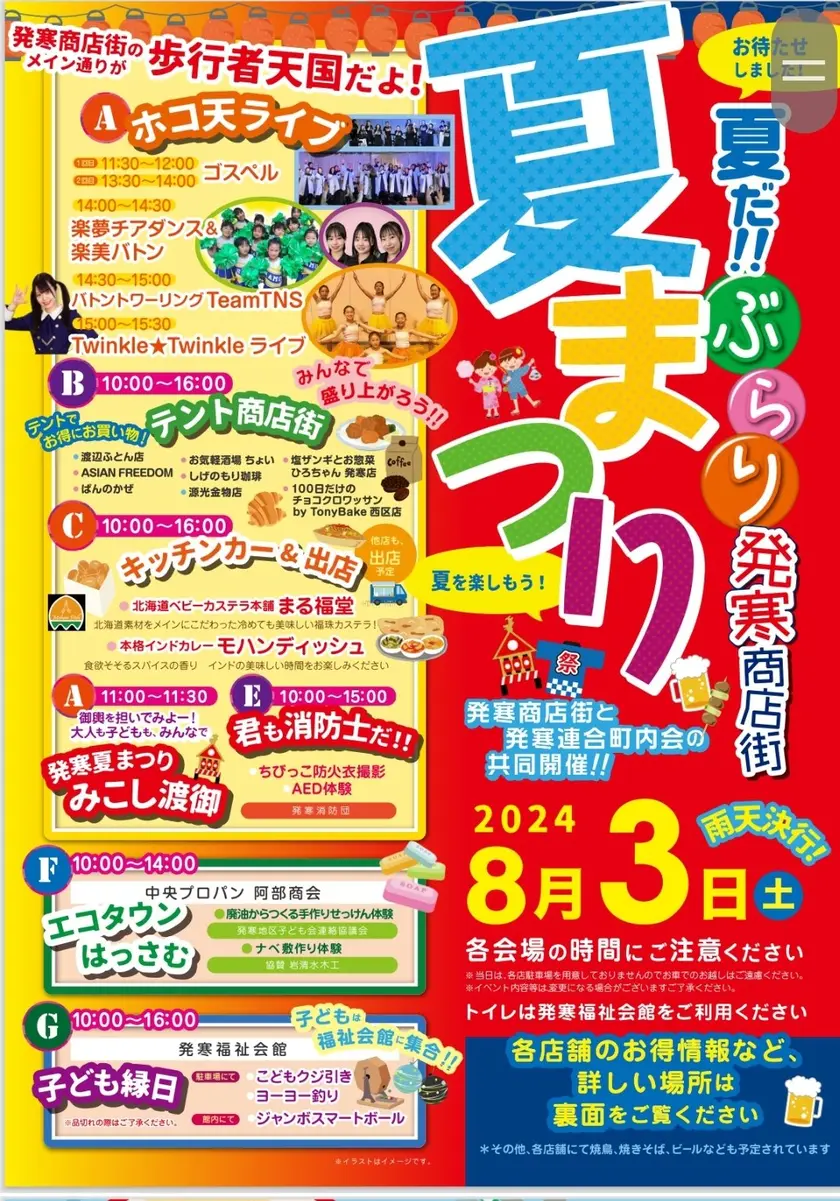 8月3日(土) 夏だ!ぶらり発寒商店街夏まつり@発寒福祉会館・発寒とんでん公園