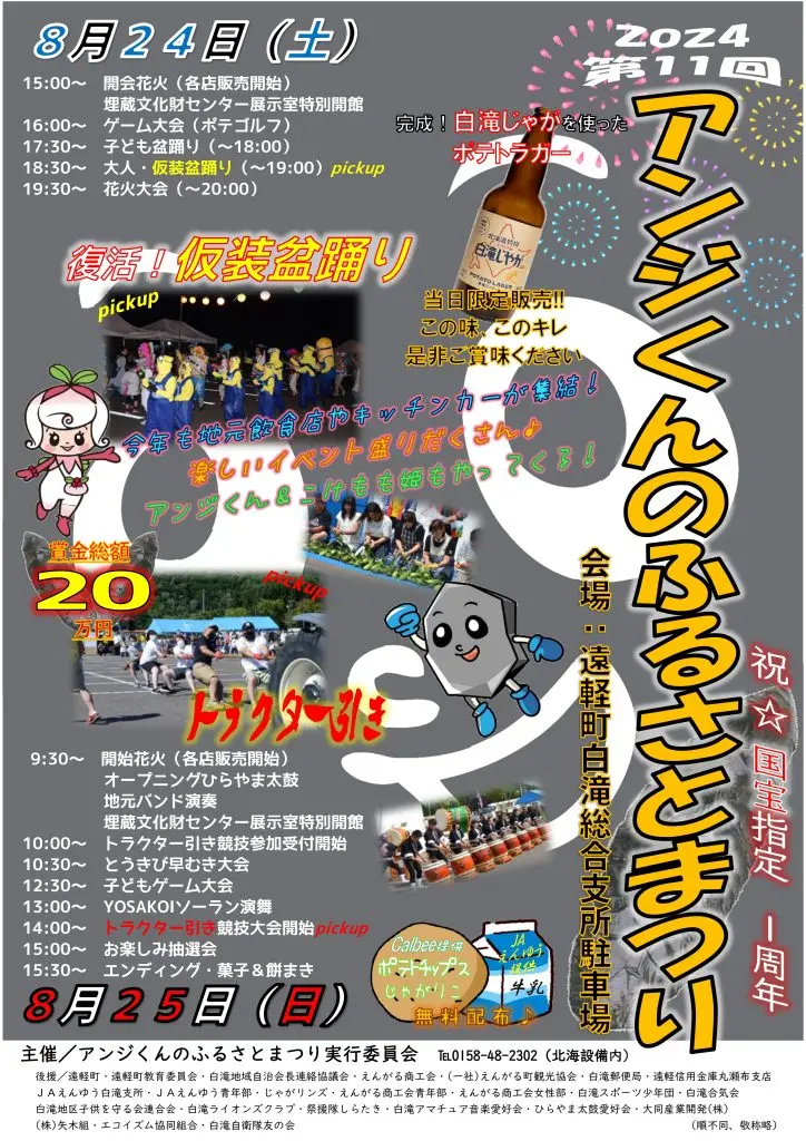 8月24日(土)〜25日(日) アンジくんのふるさとまつり@遠軽町白滝総合支所駐車場