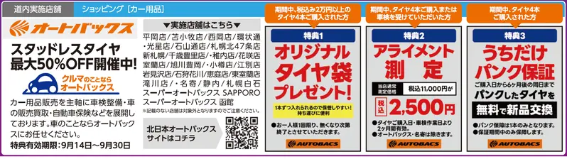 オートバックス(道内実施店舗/ショッピング[カー用品])