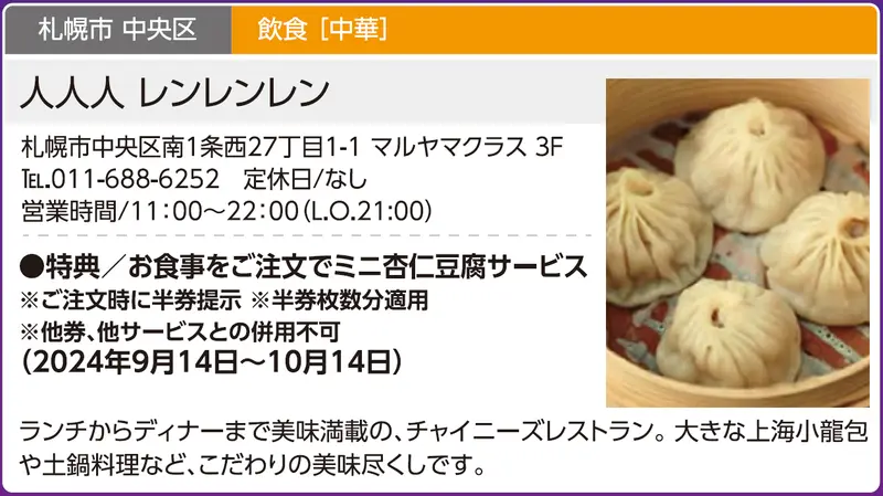 半券は捨てないで、美味しい食事やショッピングをお楽しみください!