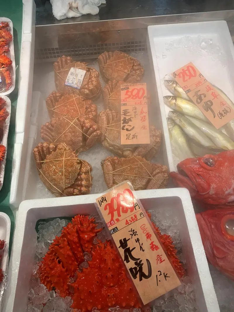 大きな花咲ガニがなんと3,980円!どうやら今の時期は主に「花咲ガニ」がたくさん採れてると教えていただきました。
