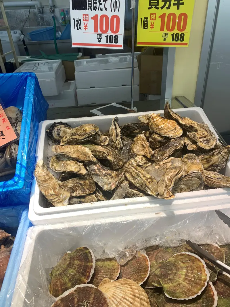 市場のようなスタイルでパック詰めされていない鮮魚や貝類などが所狭しと並んでいます。
