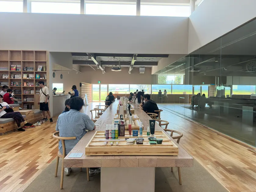 施設内はとても広く、開放的な空間で、たくさんのお客様がいる割に狭さを感じない優雅な空間でした。もちろん、工場内は隅から隅までオシャレでどこにいてもおしゃれな空間を満喫できますが、一歩外に出ると砂川の大自然。なかなか味わうことのできない独特な空気感が演出された場所でした。