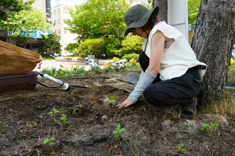 作業中、道行く人に「いつもきれいなお花をありがとう!」と声を掛けられていた場面がとても印象的でした。