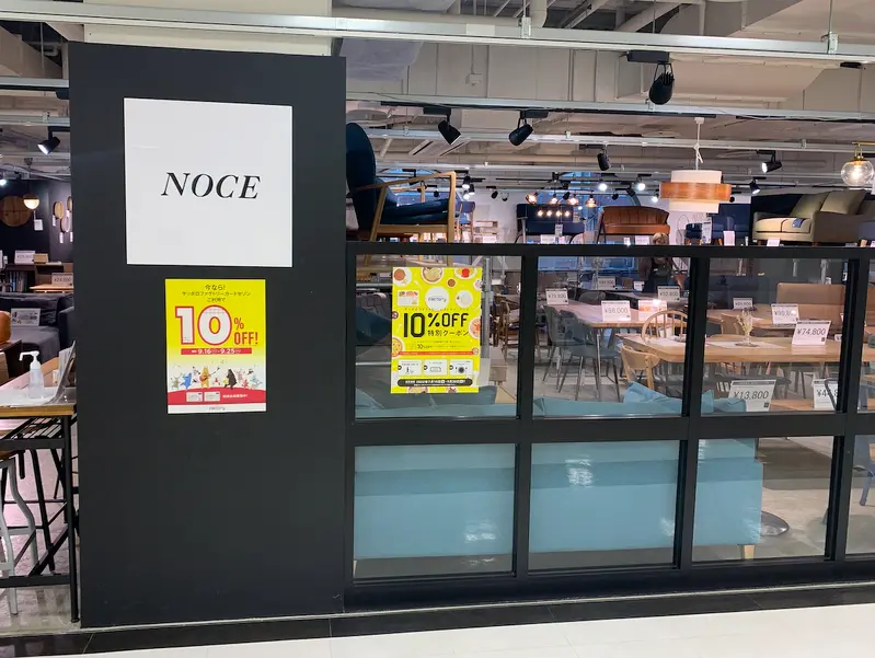 2021年3月3日(水)にサッポロファクトリーレンガ館2階に移転リニューアルOPENしたNOCEは、ソファーやテーブル、椅子などセンスの良い家具がお手頃価格で揃っています。2022年9月16日現在で、ソファの展示が約40台、ダイニングテーブル10台以上、チェアも40台以上と品揃えは抜群!時計やラグなどの雑貨も取り扱っていますよ。