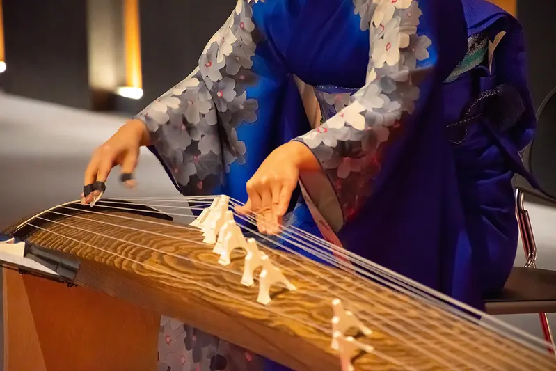 新春の幕開けにふさわしい、お箏の生演奏が華やかな音色でロビーを彩ります。優美な調べとともに、新年のひとときをお楽しみください。
