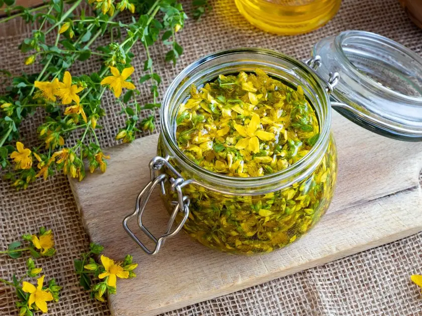 真狩村で栽培している花、セントジョーンズワートは農薬を使わずに育て、花が満開になったタイミングでハサミを使い手作業で花を摘み取ります。