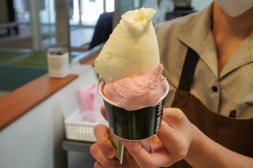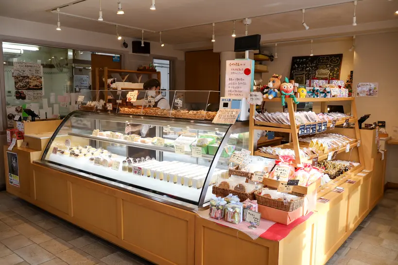 1軒目は自社牧場の新鮮なミルクを使いジェラートやスイーツをつくる「岩瀬牧場」。