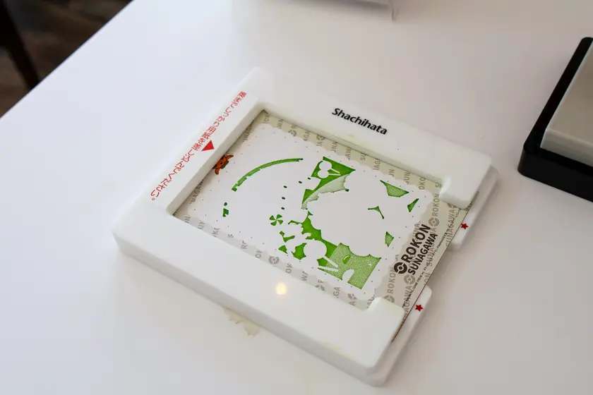 2つめの図柄をポンとスタンプ。まだまだ、どんな絵柄が完成するのかはわかりませんね。