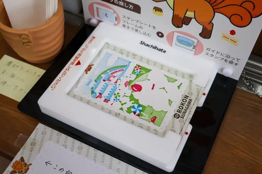 4つ目のスタンプを捺せば絵柄はほぼ完成!砂川ハイウェイオアシス館へと向かいます!
