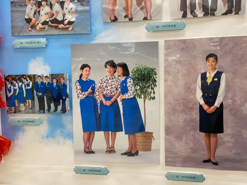 ロゴも変われば制服も変わる!いやぁ、昭和感たっぷりですね。昭和生まれの人には逆にしっくりくる懐かしいデザインですよね。なんかオカンの若い頃の写真を見ているよう笑