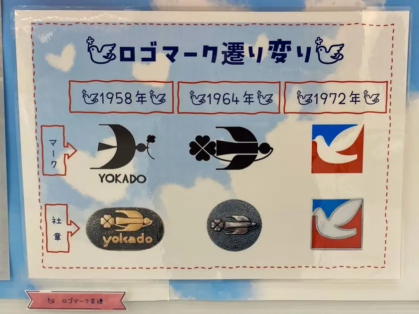 皆さんお馴染みの鳩のロゴマークも、昔とは随分変わってきています。初めは「YOKADO」の文字も手書きっぽかったんですねぇ。