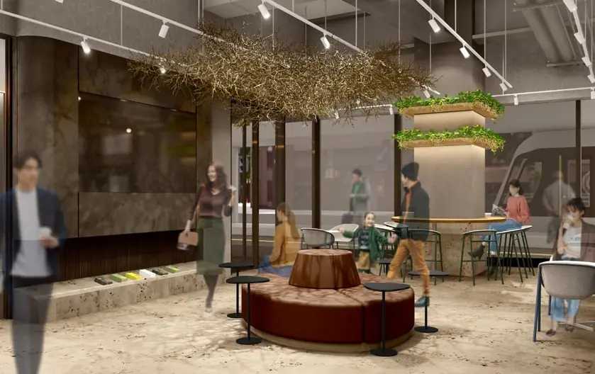 1階には4丁目の十字街に面した物販店舗が並ぶほか、共用空間のまちのリビング「4PLA SPOT」(4プラ スポット)は、札幌市電「西4丁目」駅の正面に位置し、カフェスタンドも併設されるので、市電を待つ間や待ち合わせの新たなスポットとしても利用できそうですね。